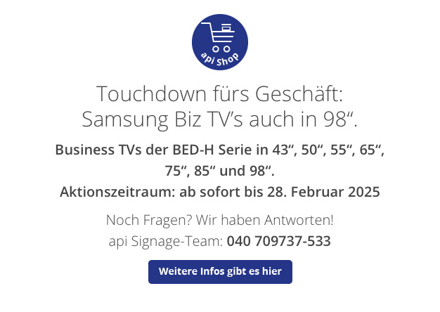 Alle Preise verstehen sich zzgl. der gesetzlichen Mehrwertsteuer. Es gelten die AGB und Garantiebedingungen der api GmbH. Änderungen, Irrtümer, Druckfehler und Preisänderungen vorbehalten. Alle genannten Produkte sind eingetragene Warenzeichen der jeweiligen Hersteller. Der Rechtsweg ist ausgeschlossen.